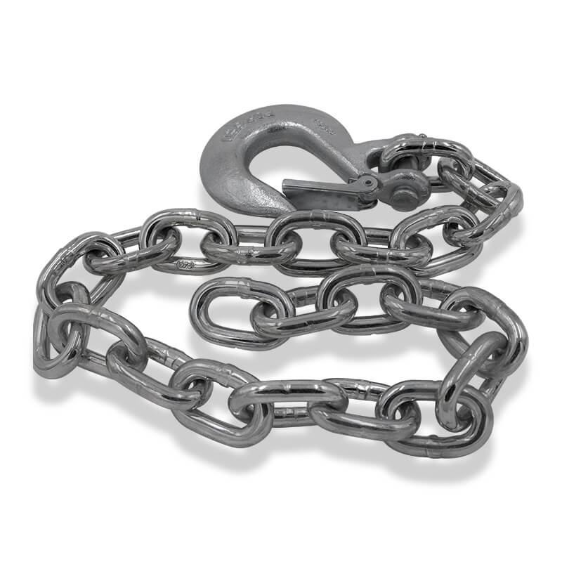 Trailer safety chains. Connects the trailer to the towing vehicle as a safety measure in case of a trailer disconnect. Fits many styles and sizes of trailer. Sold as a single chain.